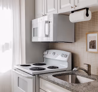 Spacious enough to share, refined enough to feel personal. This Two-Bedroom Apartment includes a king bedroom, a queen bedroom, and a separate living area with a queen pull-out sofa and streaming-enabled TV. A full kitchen makes longer stays effortless, while the bathroom’s soaking tub and shower add an at-home ease in Midtown Manhattan.